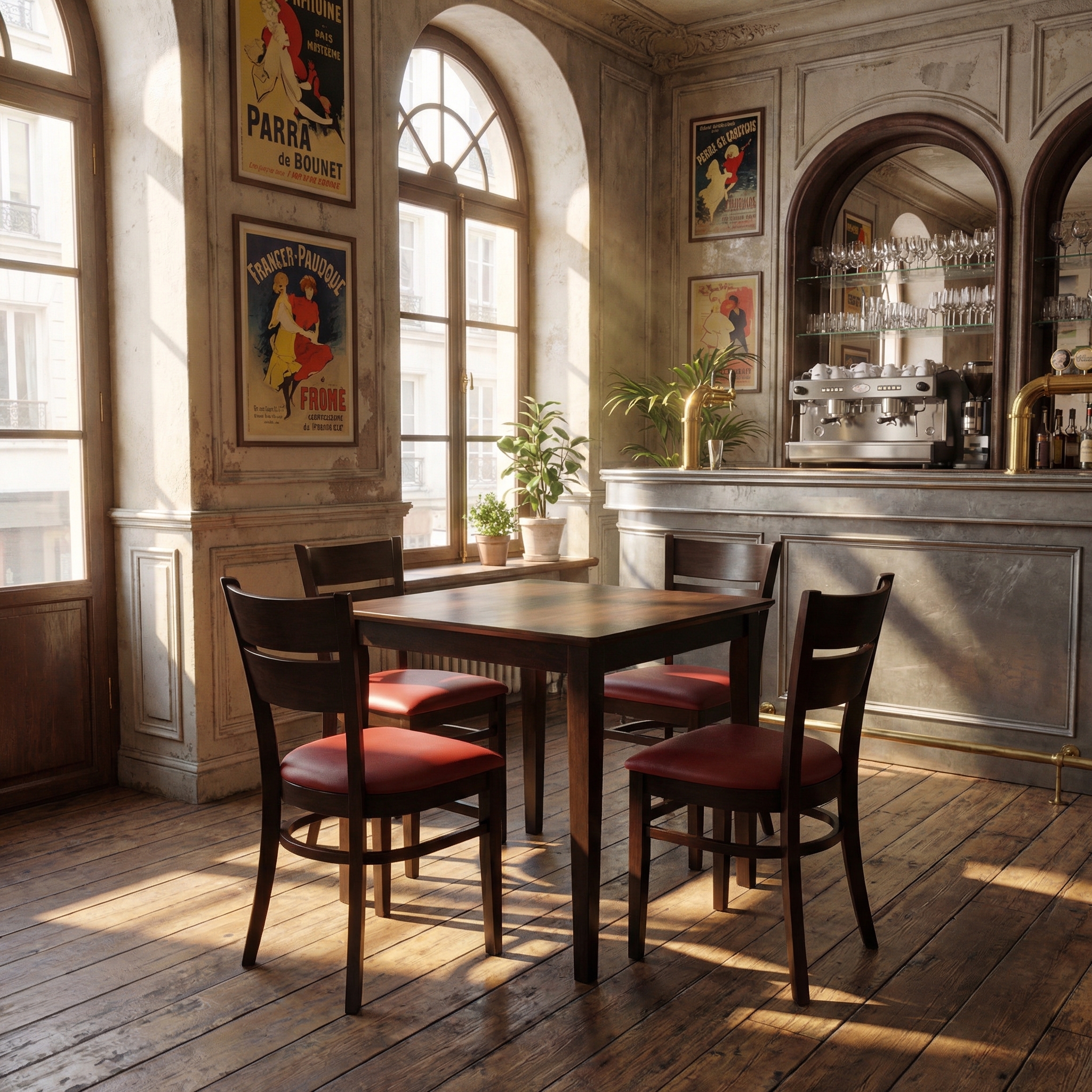1+4 set echt hout 120x75cm Grace restaurantstoelen hotel bistrotafels