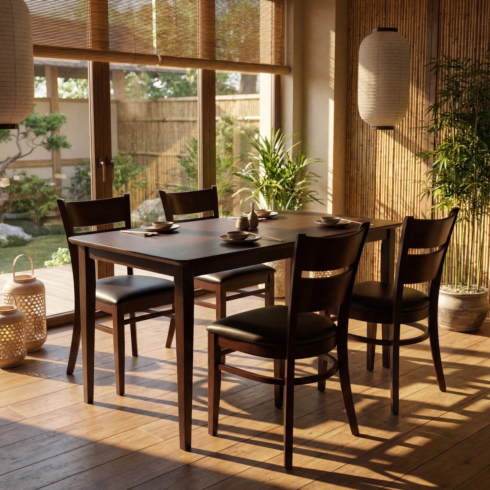 1+4 set echt hout 120x75cm Grace restaurantstoelen hotel bistrotafels