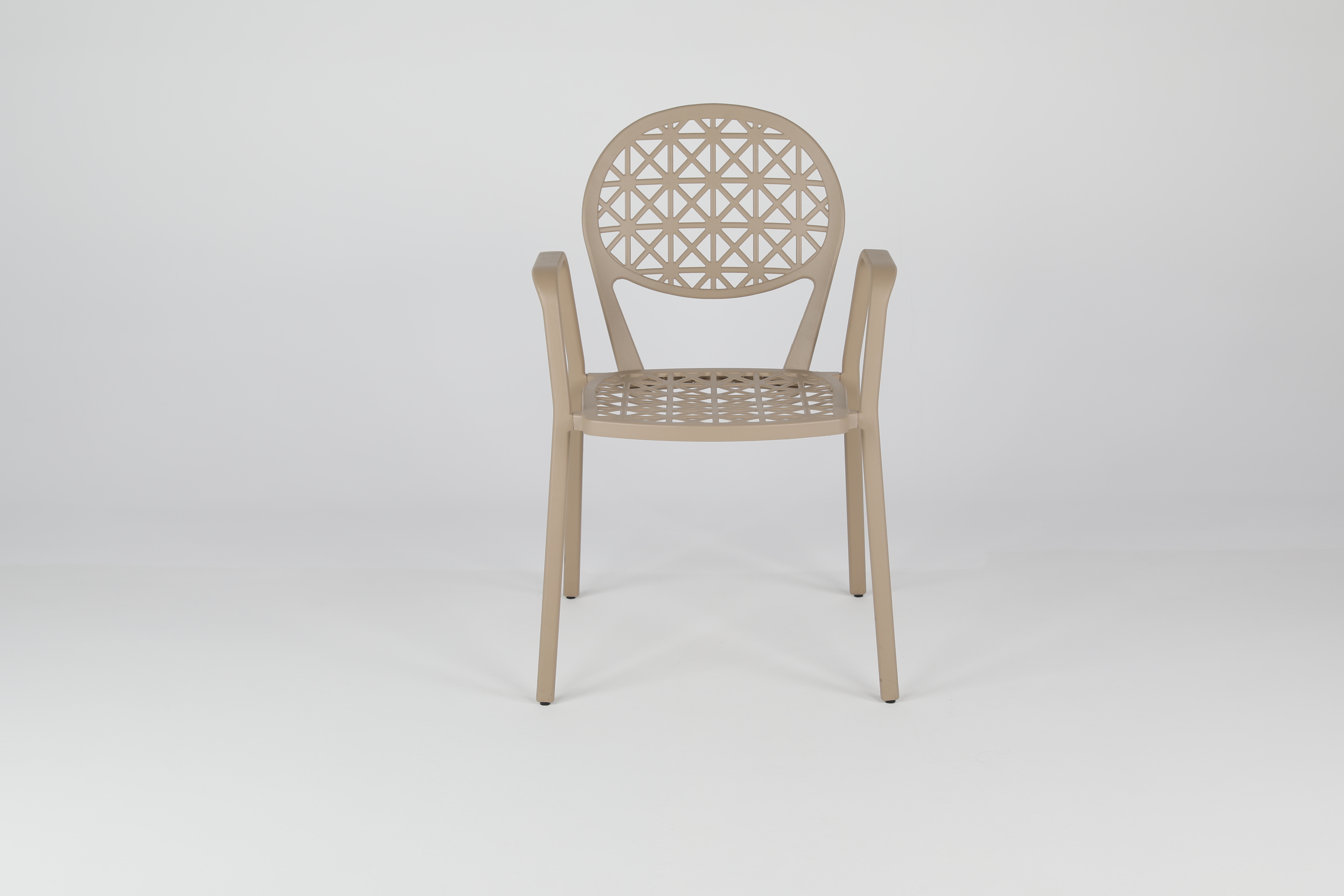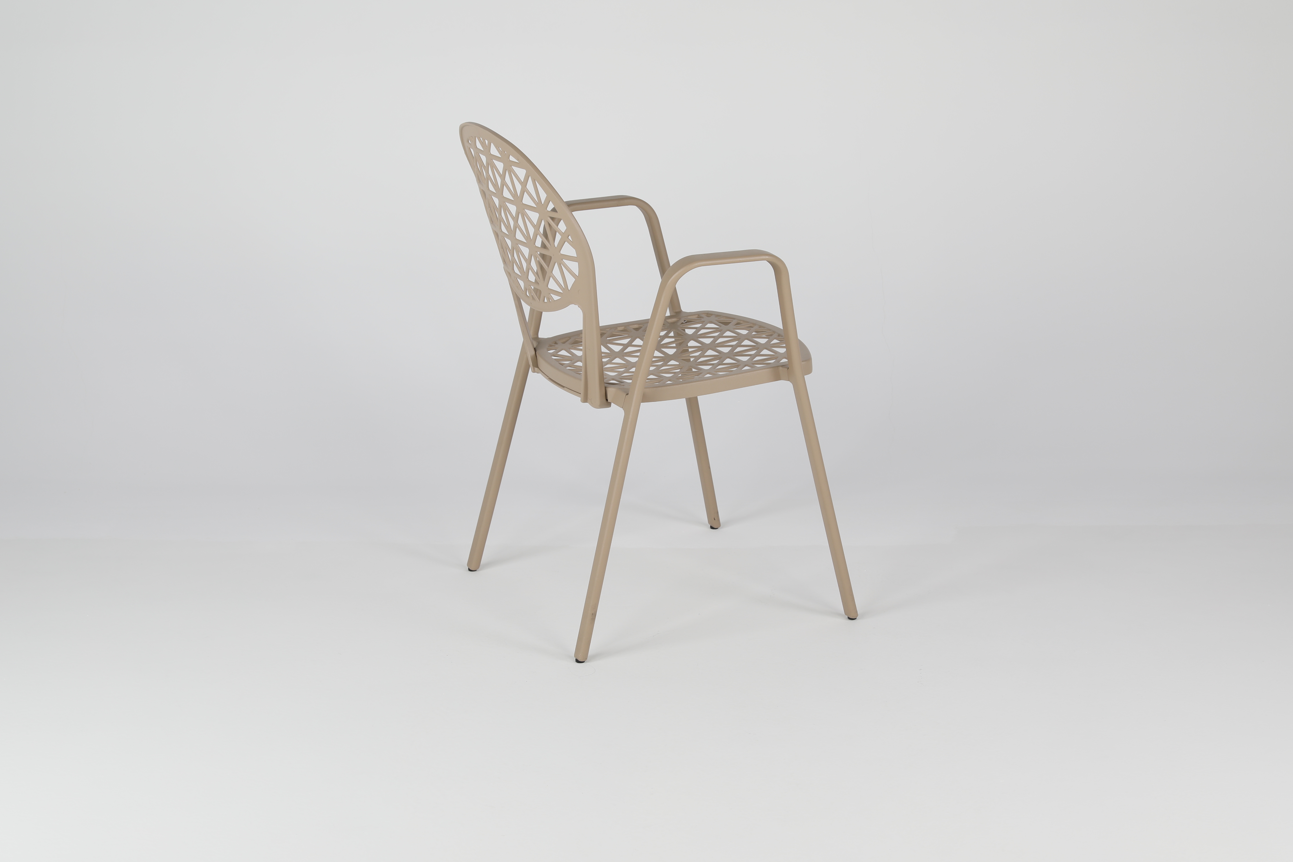 De Izmir aluminium buitenstoel maakt indruk door zijn combinatie van elegant design, robuuste constructie en duurzame coating.