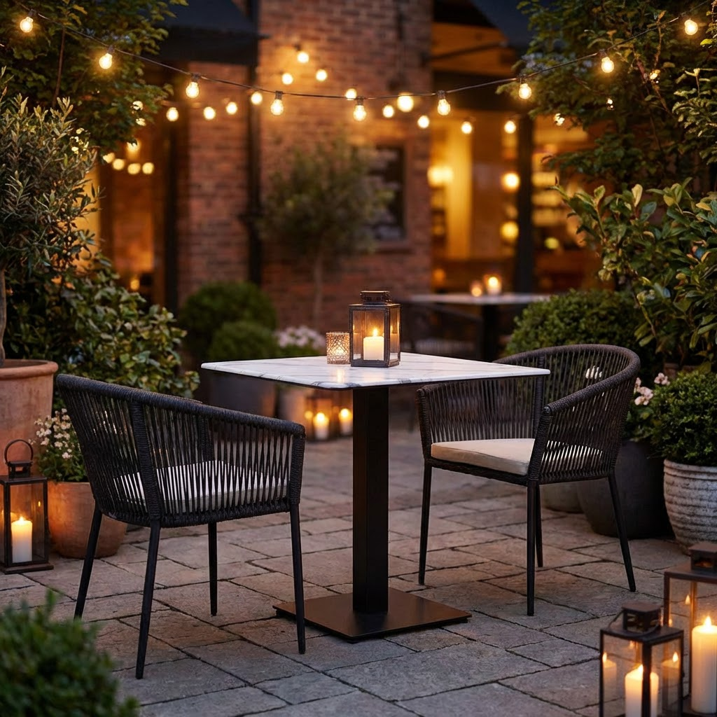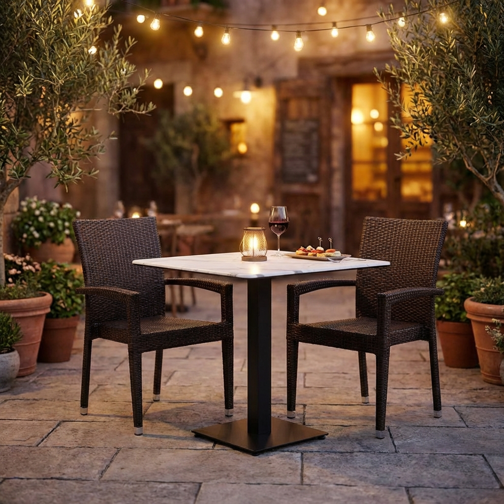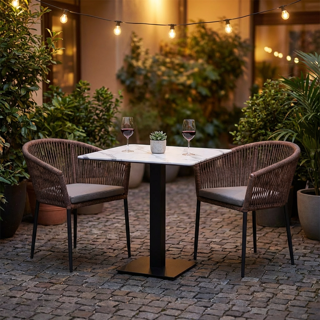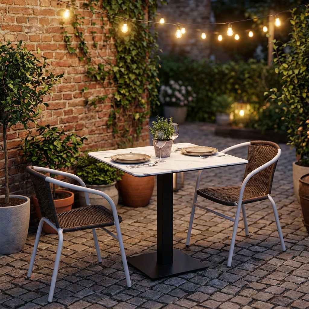 Buitentafel Catania 60x60cm Marmerlook Wit Compact HPL tafelblad