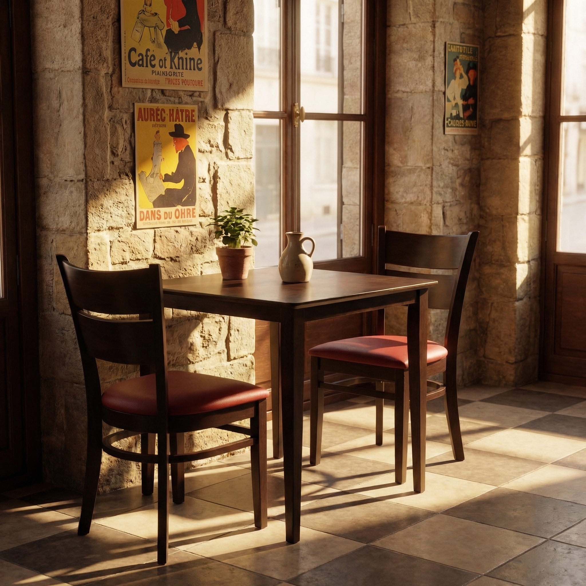 Dieser Bistro-Tisch wurde speziell für den Einsatz in der Gastronomie konzipiert. Das massive Vollholz sorgt für hohe Stabilität und Belastbarkeit – ideal für den täglichen Restaurantbetrieb. Die dunkle Holzoptik schafft ein warmes, modernes Ambiente und lässt sich hervorragend mit verschiedenen Stuhlmodellen kombinieren.