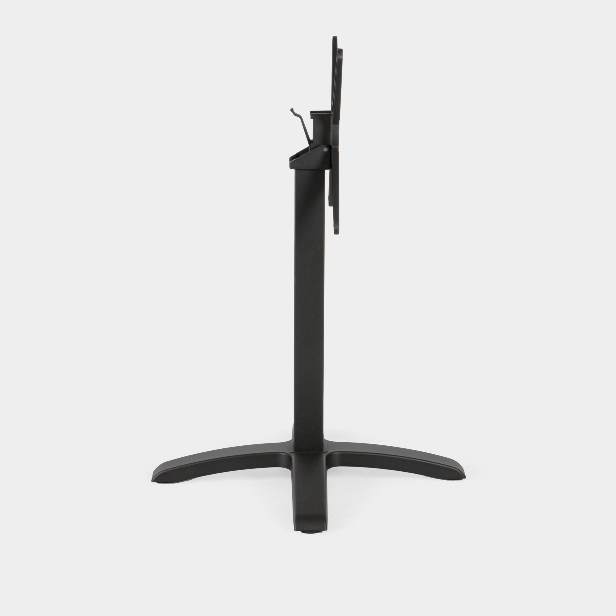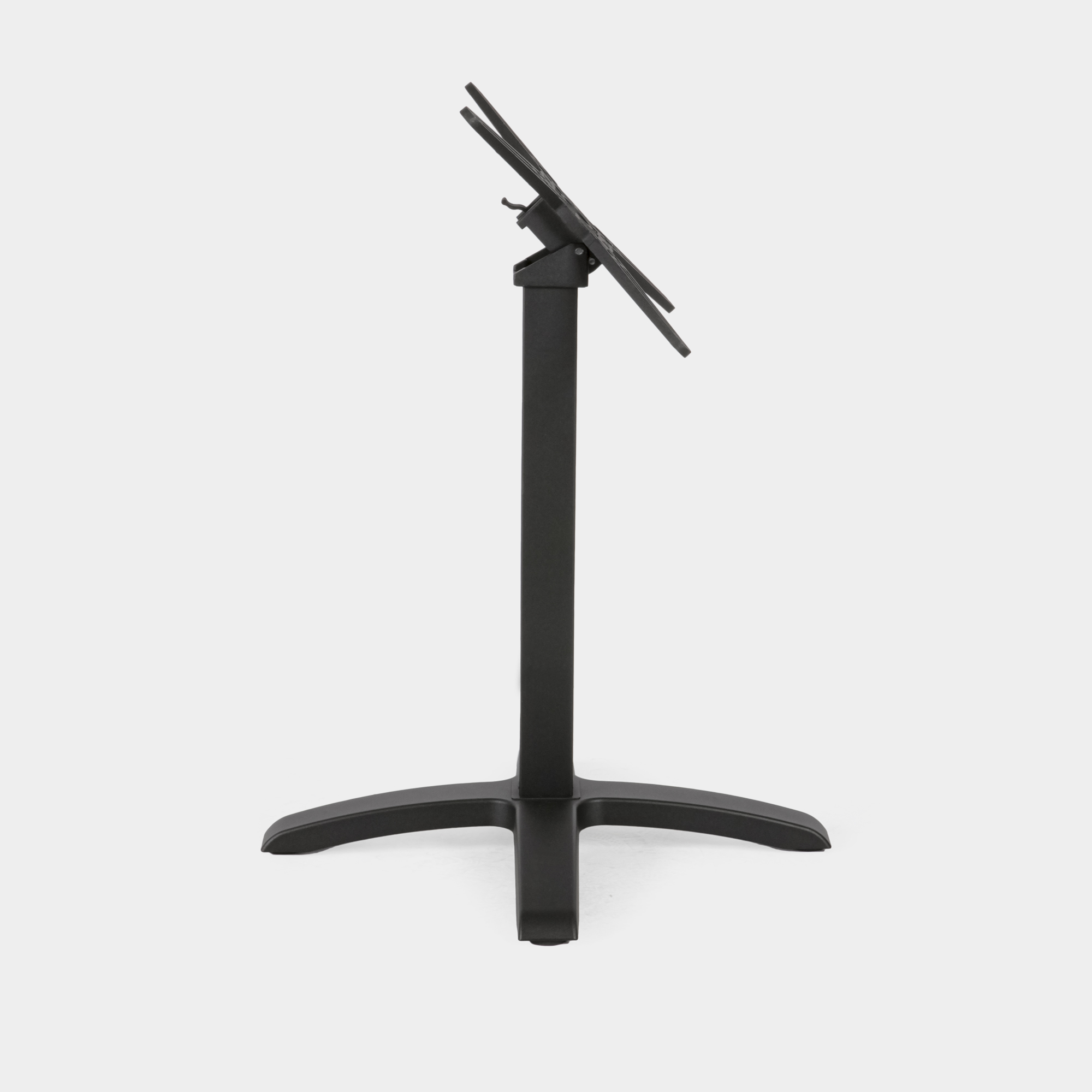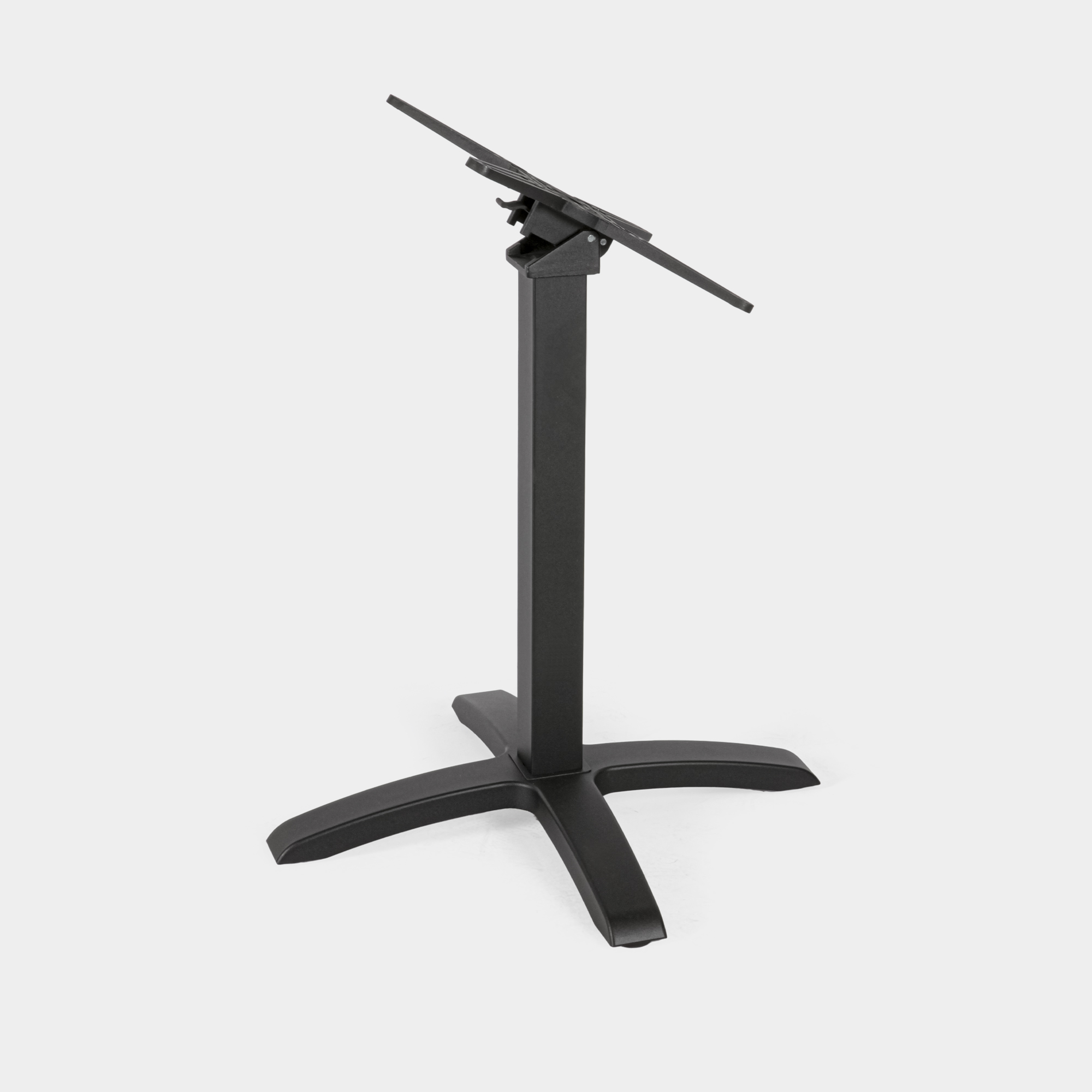 Dieses Tischgestell wurde speziell für den Einsatz in gastronomischen Einrichtungen sowie im Innen- und Außenbereich konzipiert. Die Konstruktion besteht aus einem Kreuz- und Säulenelement aus hochdruckgegossenem Aluminium sowie einem Sockel aus Gusseisen. Die Oberfläche ist mit einer elektrostatischen Pulverbeschichtung versehen und in der Farbe Schwarz erhältlich – für eine langlebige, korrosionsbeständige Nutzung.